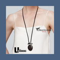 ShinningU- Vintage Ethnic Wind Simple Geometric Oval Natural Black Sandalwood Pendant Necklace Metal Splice Necklace