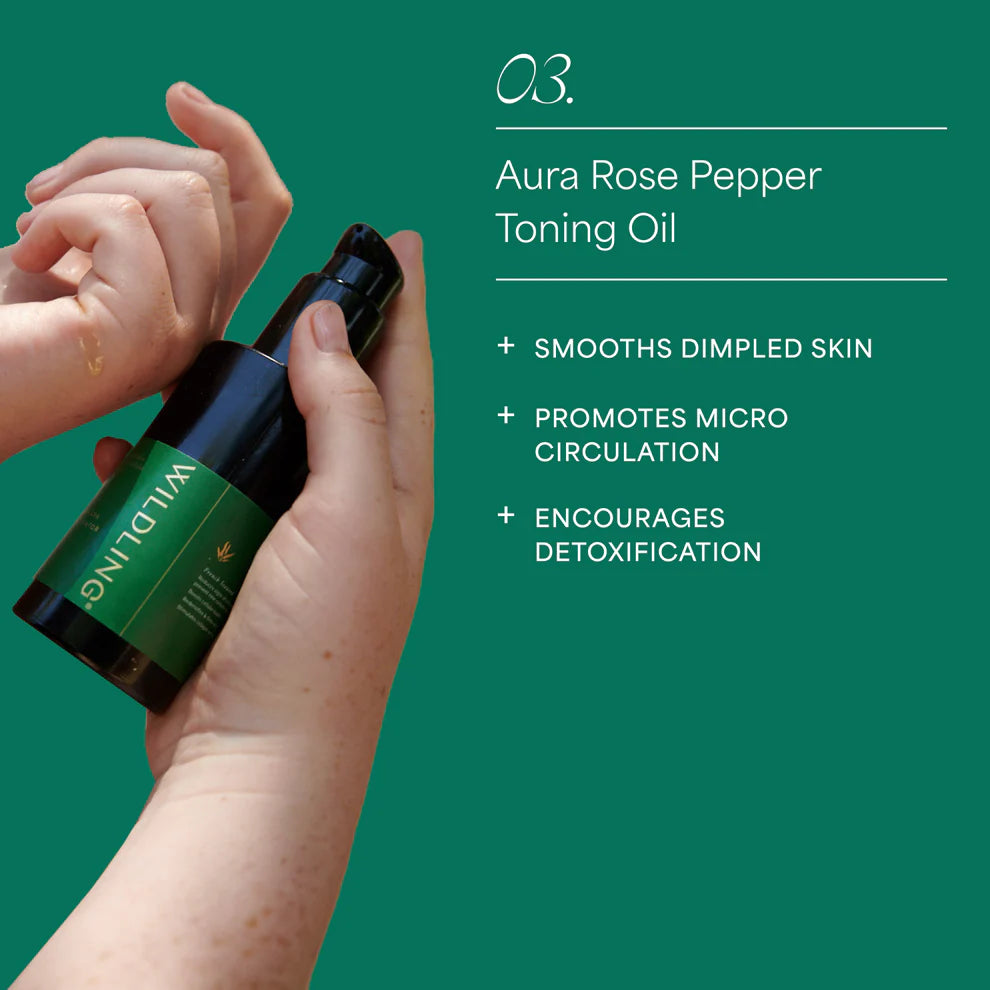 Experience the Wildling Aura Collection, a four-step body ritual inspired by Traditional Chinese Medicine. Developed by an acupuncturist and holistic esthetician, this system combines a patented Aura Stone Gua Sha tool and an artisan-crafted Aura Sweeper dry brush made from plant-based agave fibers. Together, they promote healthy lymphatic flow, support cellular detoxification, and release deep tension, helping to smooth, tone, tighten, and sculpt your skin. Notice visible improvements and enjoy an energizing full-body experience after just one use.