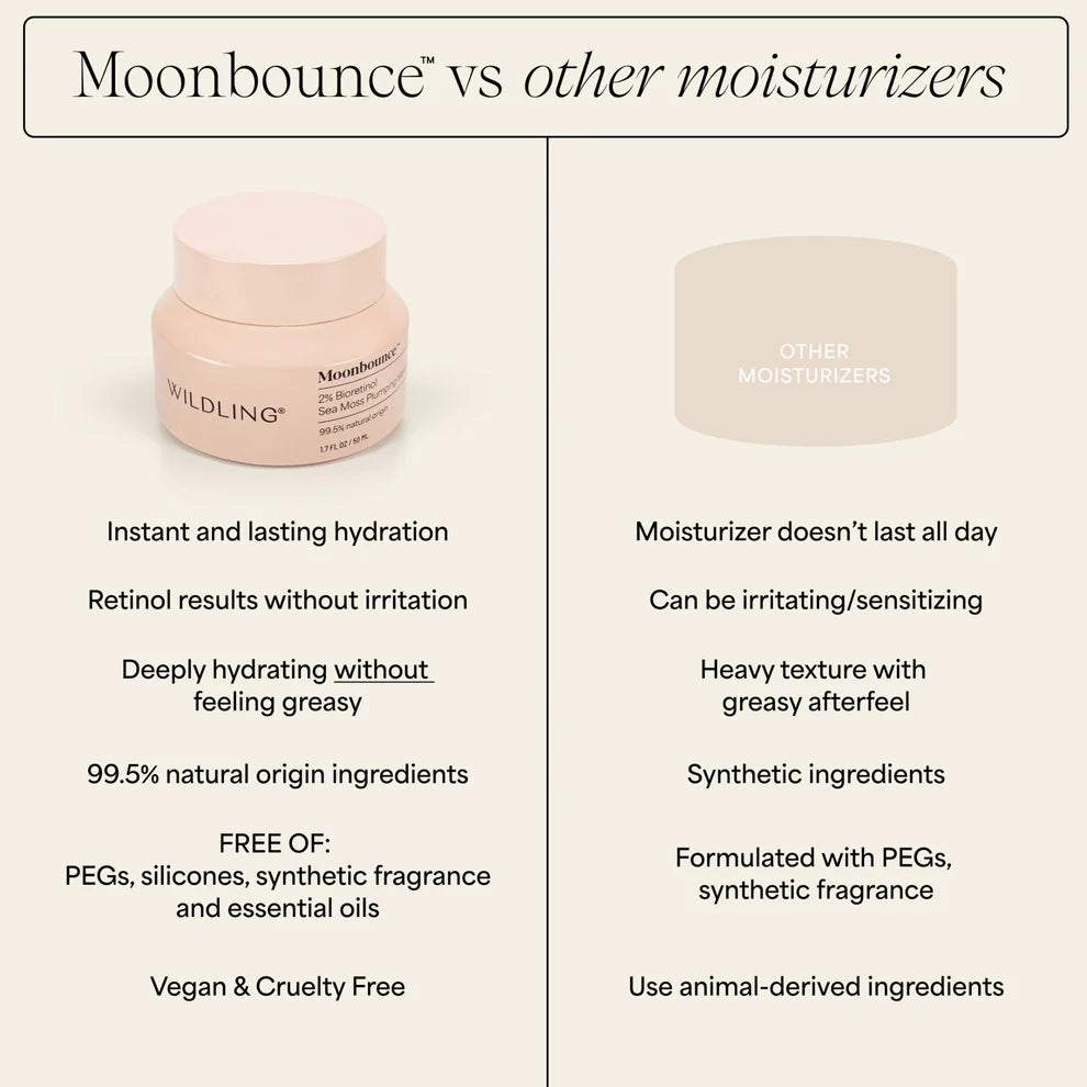 Elevate your daily skincare with the Wildling Skin Wellness Ritual, expertly crafted to cleanse, hydrate, and visibly plump your skin. This starter set includes the Starnectar Barrier Protect Jelly Cleanser, a gentle makeup remover that supports your skin barrier; the Moonbounce 2% Bio Retinol Plumping Moisturizer, delivering weightless hydration while firming and reducing wrinkles; and a Reflexology Spoon designed to enhance skin firmness, relieve tension, and promote energy balance. Suitable for all skin types, this ritual can be further enhanced with facial Gua Sha techniques for optimal results.